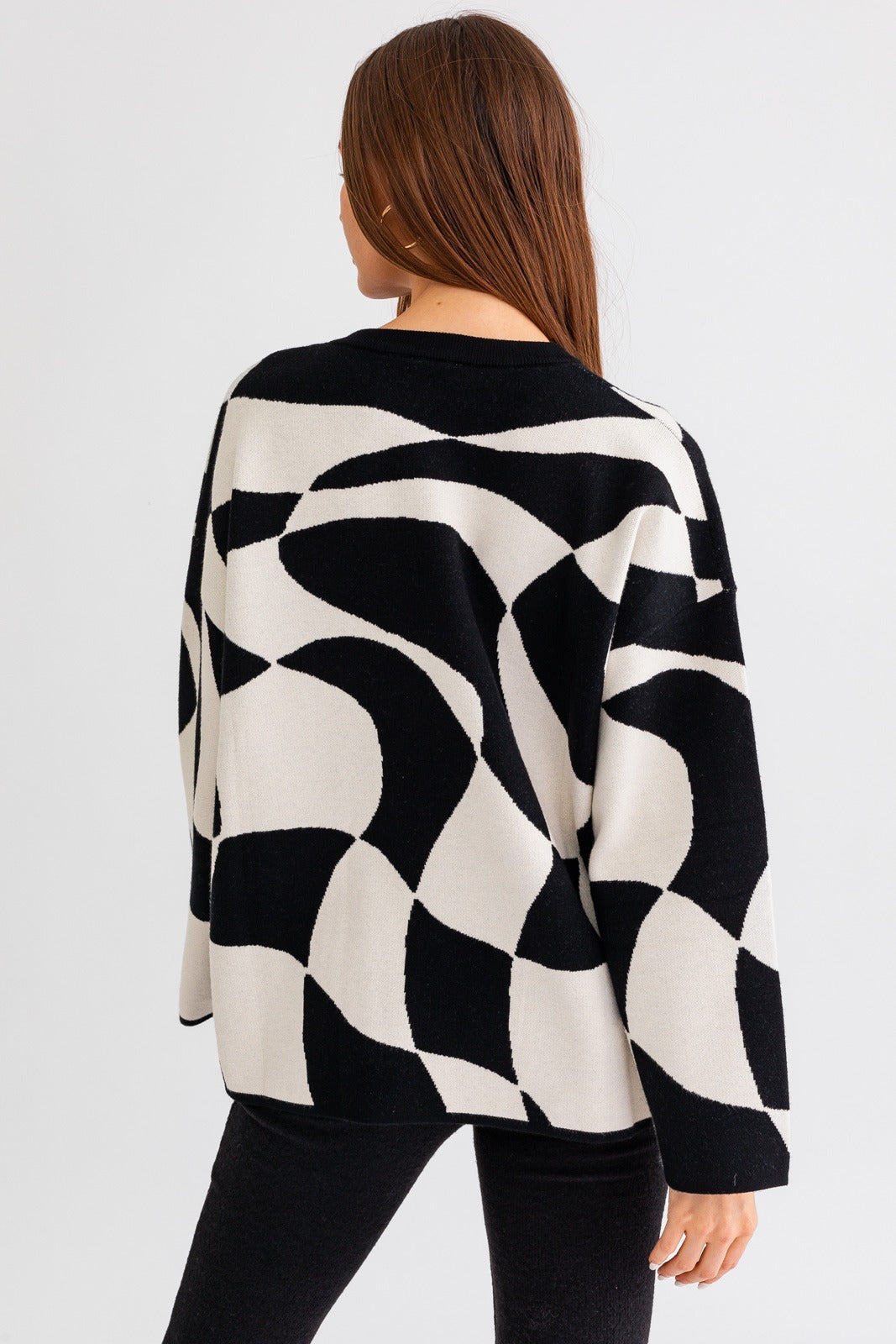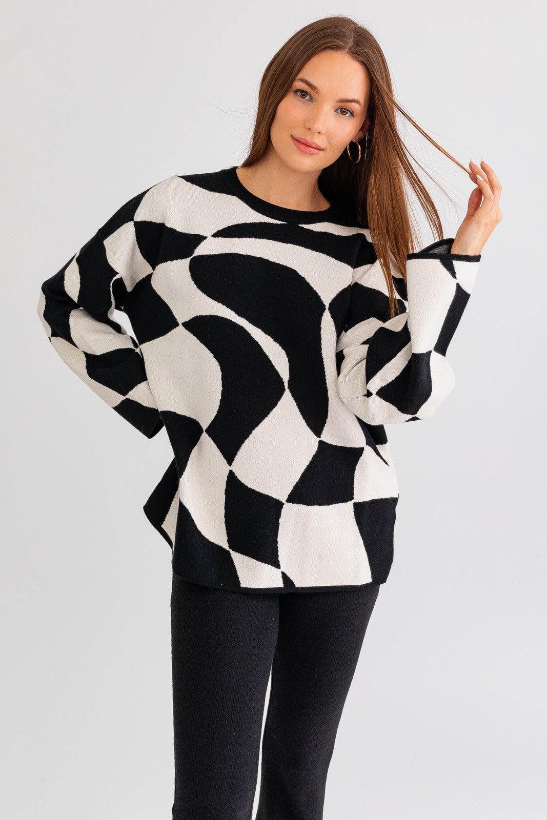 Beautiful retro black and white sweater, ideal piece to have on your wardrobe.