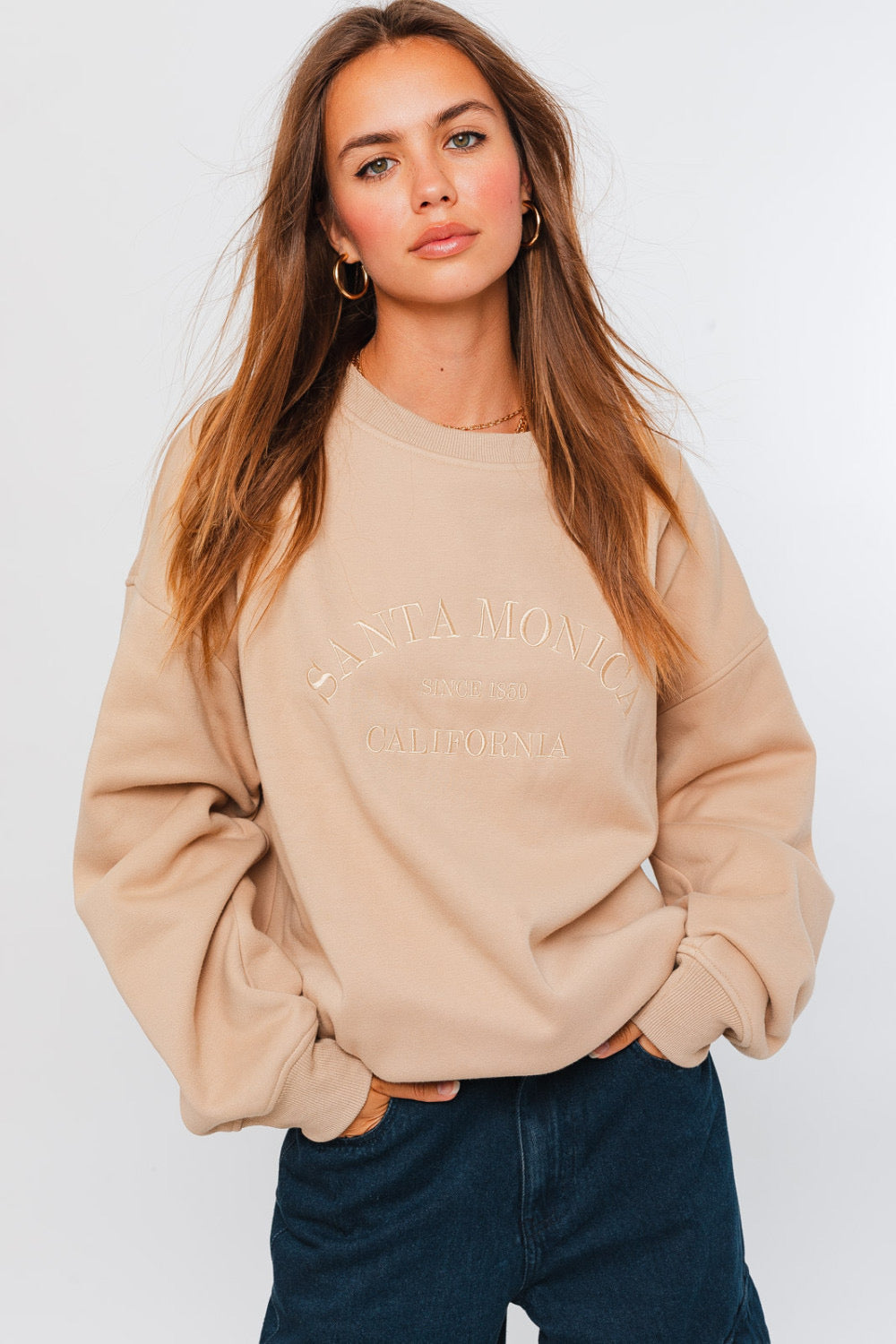 This super cozy beige "Santa Monica" sweatshirt is perfect for fall and winter days.