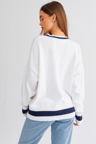 NY KNIT WHITE AND DARK BLUE SWEATER